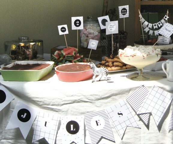 Het leuke aan (kinder)feestjes vind ik dat je ongegeneerd aan het versieren kan. Al werd ik niet bepaald enthousiast van het aanbod in de plaatselijke feestwinkel. Bumba ballonnen, slingers van Cars of kartonnen bekers met Spiderman. Laat maar!